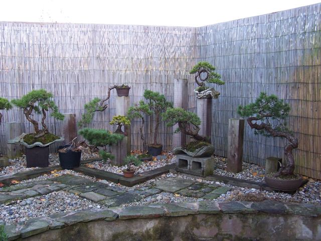 I arrived early Thursday night “Very relieved” at John Lennon airport Liverpool. I took off from Amsterdam in the middle of a heavy storm! Just after the bumpy take-off, the plane just fall down for a (long) couple of seconds! Everybody screamed and the sleeping guy next to me crept hold of my leg. Then there was an enormous bang when the plane got hold of some air again! It scared the living shit out of me and I had to re-swallow most of my meal for the second time. So In a panic, I tried to take an anti-air sickness pill, but I had nothing to drink with me on board (thanks to you know who?), so I tried to swallow the thing without any water! Trying to swallow a pill the size of a small golf ball, with a dry mouth from fear, is simply impossible! And so the damn thing started to melt on my tongue, so I had to spit it out! After that, it took several hours before I finally could speak again without a lisp! But until this day, I still not got my normal taste back in my mouth! After a bouncy landing, my humour got quickly better, when I met up with Tony, who brought me to his car where Enrico and Ivo were already waiting. Along the way to my house of Terry, where I would stay during the weekend, we had an animated talk about… well stuff!! 😉 They dropped me off at Terry and Charlot’s place, just in time for a lovely home-cooked big and juicy pepper steak, fresh from the Hills (I’m drooling on my keyboard again)! Then some beer and a film on his wall-size television and then (around 2) off to bed, for a short night. Early in the next morning while, Terry was making a large breakfast, I had a chance to wander through his amazing collection of bonsai. I admire Terry’s delegate style and I would like to share some of his lovely Bonsai that I saw that cold morning. Enjoy!
