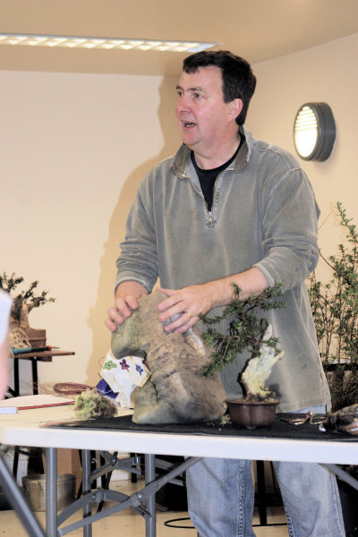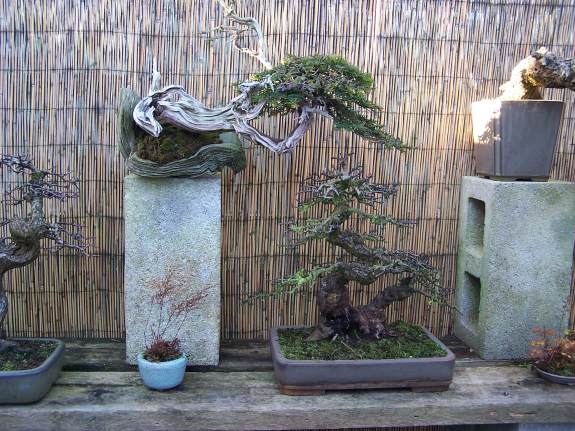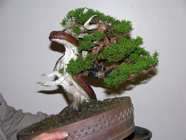 Below: Mick, working on a “Yamadori” common Juniper, came together with Morea, over a very stormy sea all the way from Holland.