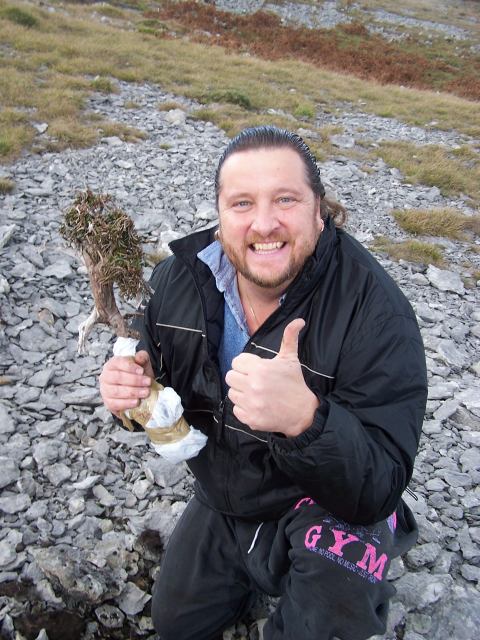 Below: Happy me, with a beautiful “Shohin” sized Yamadori “Yew”.