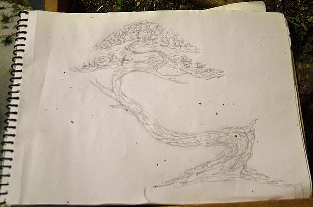 Below: Sitting down to draw my design for the tree and to take off the weight of my back, was absolutely killing me!