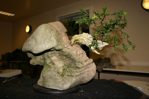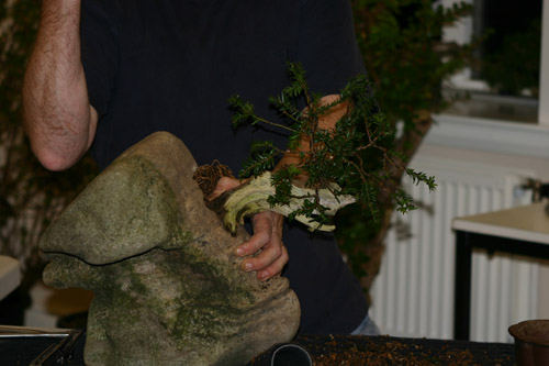 Tony planted a beautiful small “Yew” on a very heavy stone he earlier prepared. I still don’t understand how he managed to get that big hole in that hard rock.