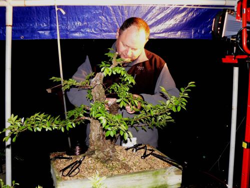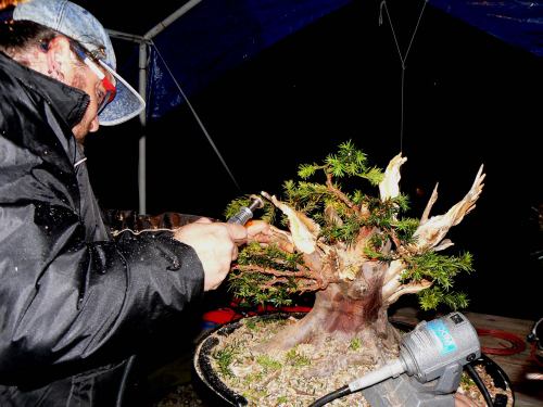 After a long day of hard work we allowed our selfs a short break for a nice dinner and then it was back to our waiting Bonsai work and fun! It was raining, storming and freezing that whole evening and the early night…but nothing could stop us…we were in the zone!!!