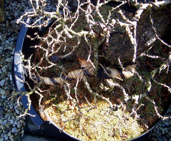 Above; I made this picture with a backdrop to make the branches stand more out. I am really happy how the image of “X.L” is progressing. I can’t wait to see how he will look in a few weeks, when the brightly, and still very small, green needles start appearing. Then the scale of this old Larch is at it best! Maybe next year, if possible, I will plant him in a nice pot? I hope you like the progress so far?