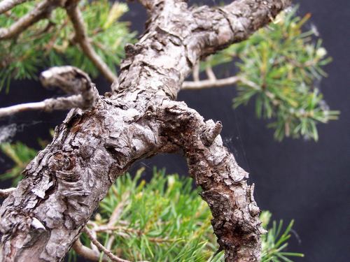 Left: Here you can see the beautiful old bark on the trunk and right side branch. Because of the small Shari’s on this old branch, the bending to bring it into its position must be done very carefully!