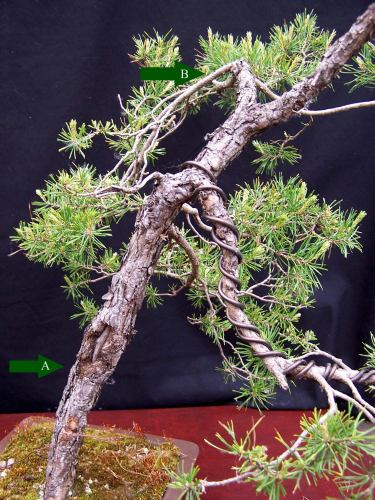 Right: Point A is the selected front. As you can see from point B, that section grows almost in the opposite direction. The old branch with the Shari is wired in such a way, that the wire covers more branch, to prevent it from breaking!