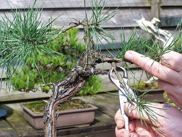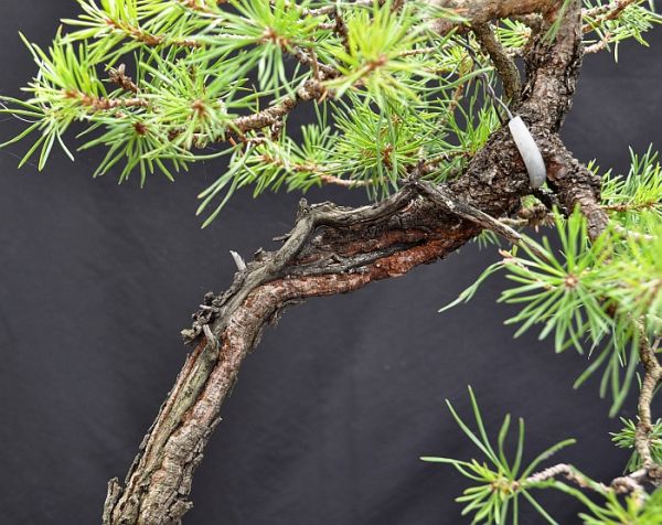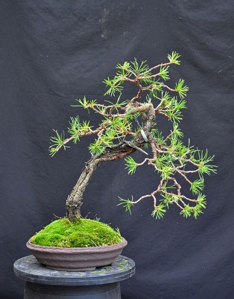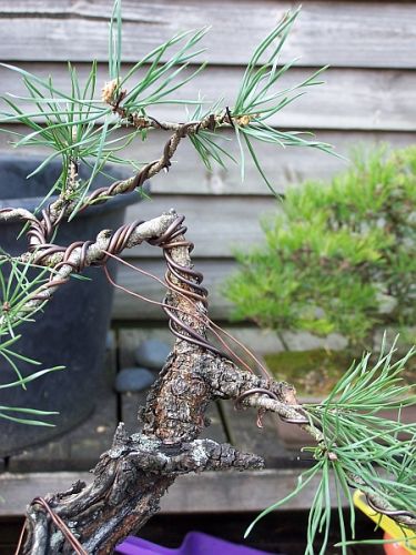Below: Yesterday, the needles from last year were one by one, carefully removed. Unwanted branches were removed and others were shortened again. Now the tree is ready to be wired again.