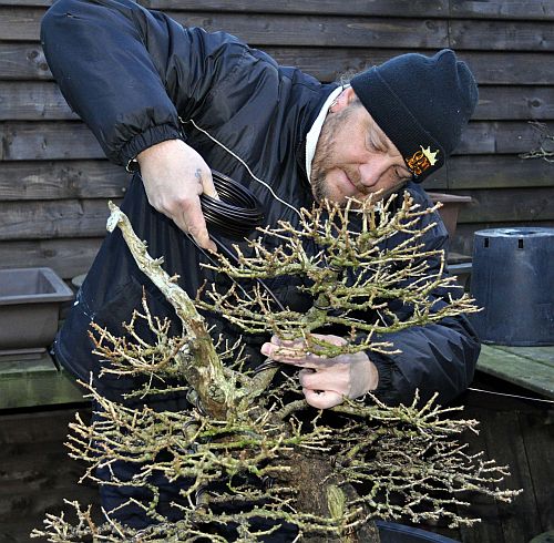 Last 2 days, I spend a couple of freezing hours rewiring my Larch named “XL”. All the older branches were still in their place, even though it was not wired last year! So I hope that after this ongoing restyling I can repot it into the pot I bought for it a few days ago! When they hopefully make a good combo and after one more year of new growth added to the foliage pads, I plan to show it next year for the first time! So fingers crossed that all works out! And if not, there is always the next year! I will post the story of that repotting as soon as it’s done! I hope that tomorrow will be a bit warmer, I can’t feel my fingers anymore! 🙂