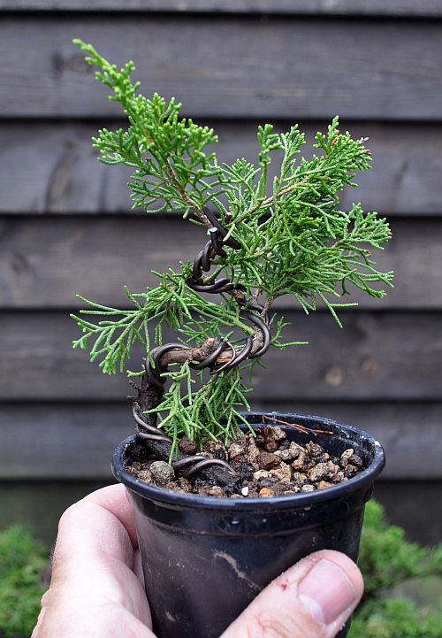 the last few days were really sunny over here, so I thought it would be a great opportunity to do some fun work while taking in some rays. Over the last 4 or 5 years, I have been taking cuttings from several Itoigawa plants. These plants themselves were raised from cuttings that I took from 3 small four-year-old itoigawa plants that I bought over a decade ago from Danny User. I bought them because I wanted to craft them onto a Juniper that was very promising but with the wrong kind of foliage. I used one for this purpose and sadly it failed. Four years later after a very hot summer, it started to lose its strength and it died shortly after. The other two itoigawa I used to make tanuki from. I had some beautiful pieces of deadwood that would be just perfect. From these (now) Tanuki I took cuttings and two air-layered (new) plants. Since then I planted every little branch that I cut off, with some rooting powder in a small plastic pot. Or I would simply stick the small cutting into the soil surrounding one of my yamadori or pre-bonsai. Many of my larger plastic pots hold a big recovering tree that is surrounded by small cuttings! 🙂 It is surprising to see just how many of these impulse cuttings survive! So by now, I was left with over 40 of these 2 to 4-year-old cuttings that needed repotting and some first styling. I freestyled them in all kinds of interesting shapes, but keeping their future image in mind! It was great fun to do and I am so curious just how these little cuttings eventually will look in 10 or 15-year time? And all this future fun from 2 small plants bought over a decade ago! Bonsai fun doesn’t have to cost a lot! 🙂
