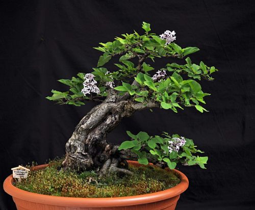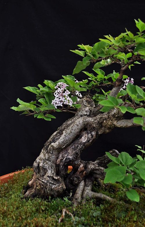 The first one, a syringa microphylla “suberba” is an urban yamadori that I bought in September 2009 from my friend Teunis Jan Klein. LINK: http://hans-van-meer.ofbonsai.org/2009/09/05/my-visit-to-bonsai-studio-deshima/ So it’s is in training for just a couple of seasons now, but even so, I think it is special already! Its trunk and roots are all gnarly and there is deadwood everywhere. There is even a see-through in the middle of the trunk! Its Winter image reminded me of the spooky trees that play their role in many fairytales and in many of the fantasy novels that I read. But then Spring arrived and the brightly fresh foliage started to grow and open up ever so slowly, softening the roughness of the battered trunk. And then three weeks ago, I saw the first signs of flower buds, and now those buds have grown into beautiful pink and white sweat-smelling towers of flowers! The contrast between the trunk and these flowers could not be greater! Beauty and ugliness go hand in hand!
