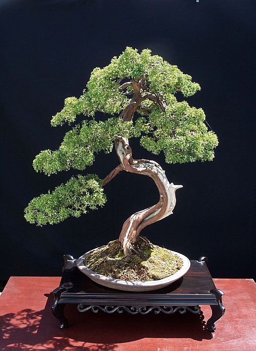 I would like to share with you some before and after shots of my Juniperus Chinensis that I named “The Italian”. You will find out why I named it that way in the next story! This tree and I go back a long time! In ’95 or ’96 I joined Farrand and Rene (today owners of the Bonsai Focus magazine) and three other Bonsai enthusiasts to drive in a rented bus all the way to Italy to see Kimura demonstrating for two days. We stayed that weekend in a very posh hotel, where after a great banquet, we even spend some drinking and having a fun time with the Master himself! Later that night he asked me to roll him a “Dutch tobacco” cigarette, like the ones my travel companions were smoking. I rolled him one and he took a puff and then he turned green and started coughing for ten minutes! 🙂 But that’s another story! Before all that, we spend a day in the famous Crespi Bonsai centre in Milan. As a group, we were able to buy trees there that later would be shipped to us. Walking through all these greenhouses, filled with all these amazing imported trees, was a dream come through. It was there that I saw the juniper from this story for the first time and although it was not really my taste in Bonsai (even then!), I fell for the quirky curves in the lower section of this tree! Because it was not prized I had to ask for the prize. Then I was told that the tree was styled by Kaneko during a demonstration the year before! And that was noticeable in the price!! But business was good that year for me so I bought the tree, together with two other trees, regardless of the price! I think now that I bought it then because material like this was pretty rare in those early years in our parts of the world! And it was the first chance I had to buy such quality material from Japan! And I wanted to have at least one more traditionally styled Bonsai in my collection! And today together with an imported shohin Itoigawa they still are the only two imported Junipers in my collection! So now you understand where this Juni gets its name from, “The Italian”!