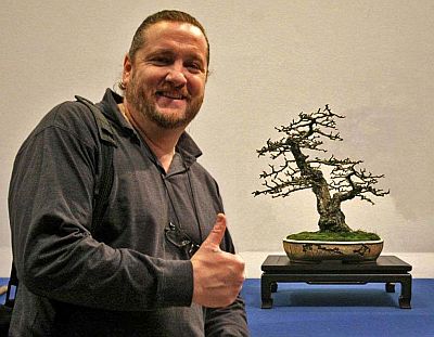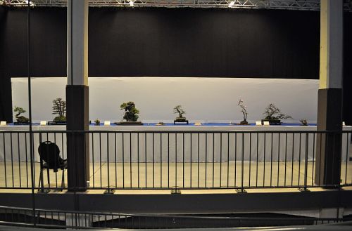 Below: This picture was made just 5 minutes before the doors opened. I shot it from the other side of this big venue. This is a view of just a small section of all the Bonsai on display. The one in the middle is my small Hawthorn.