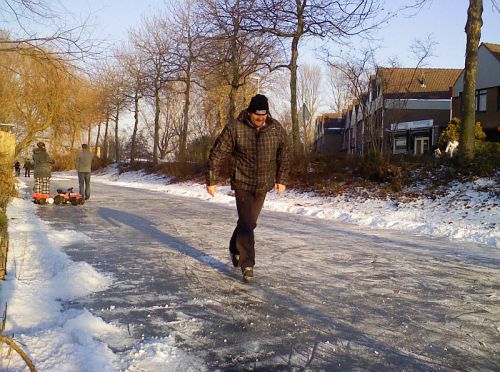 for more than a week now, Holland is experiencing a period of extreme cold weather, with a record low of more than 21 degrees frost! All my Bonsai are safely in there warmed winter shelter and there is no Bonsai work to be don in this freezing weather! In Holland (the Netherlands) young and old are taking advantage of all that ice every were around us and seeing them all having so much fun skating around in beautiful sunny weather, made me deside that it was about time to give skating a try again! During my teen years I played ice hockey for many years and skating became, just as easy as walking to me! But that was more than 28 years ago and I havend skate since than! So I looked up my old rusty ice hocky skates and walked to the corner of my street were a great ice floor was waiting for me. The first thing that I found out is that your feeds keep on growing even after you are in your twenties! My skates were much to small for my feet’s! But realy I wanted to try anyway so I managed to squeeze in my feet! The second thing I found out, is that I completely forget how to stand up strait on the ice with out falling, let alone trying to skate! For the first time in my live, I actually was afraid to fall and hurt my already weak back! But I did not want to give in to that fear and after a few attempts, my old muscles started to remember how skating was don all those years ago! It was a shame that my feeds realy started to hurt in those small shoes and that I had to stop, but it was great to stand on the ice again after so many years. Next year I will buy a new pair of ice hockey skates so that I will be prepared when father ice chooses to come around again!