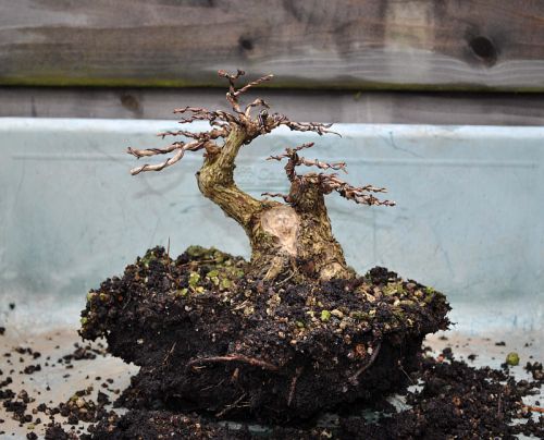 Below: There were enough small roots to safely remove a long stump that was left on for safety when I collected this little tree in Wales.