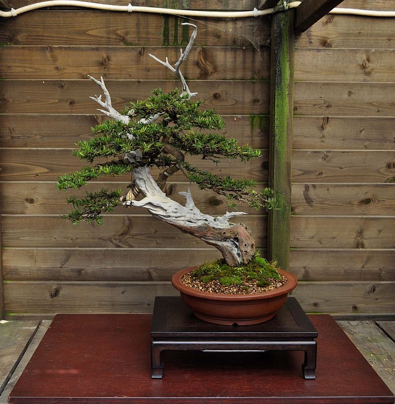 I finally have found a Chinese round pot that is better suited for the new image of my Yew. The repotting went very smoothly, after all those years of root work, the present rootball consists for 90% out of small feeder roots. That made removing the old soil very easily. Although this new pot looks smaller than the old pot, there is actually more room for the roots to grow! This is important because the tree is still recovering from losing foliage and some branches and needs to fill out again! Anyway, I hope you guy’s like this new pot tree combo?!