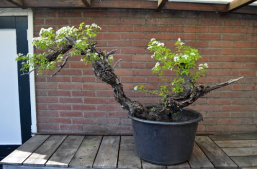 I would like to share some pictures that I made of one off my Prunus Mahaleb Yamadori in bloom! These were collected last year and I cant wait to start working on them! All these gnarly old trees clearly suffered from time and several forest firers and the deadwood on them is truly amazing!