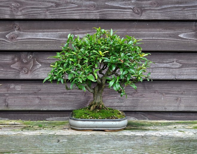 The second Sho-hin is a Punica granatum Yamadori from France. This little gem is even longer with me and has, slowly but steady, matured enormously during that time! It really looks like a proper tree now with mature branches and really amazing roots for such a small Bonsai! The beautiful pot is by John Pitt (UK).