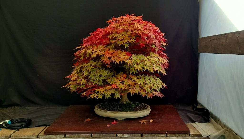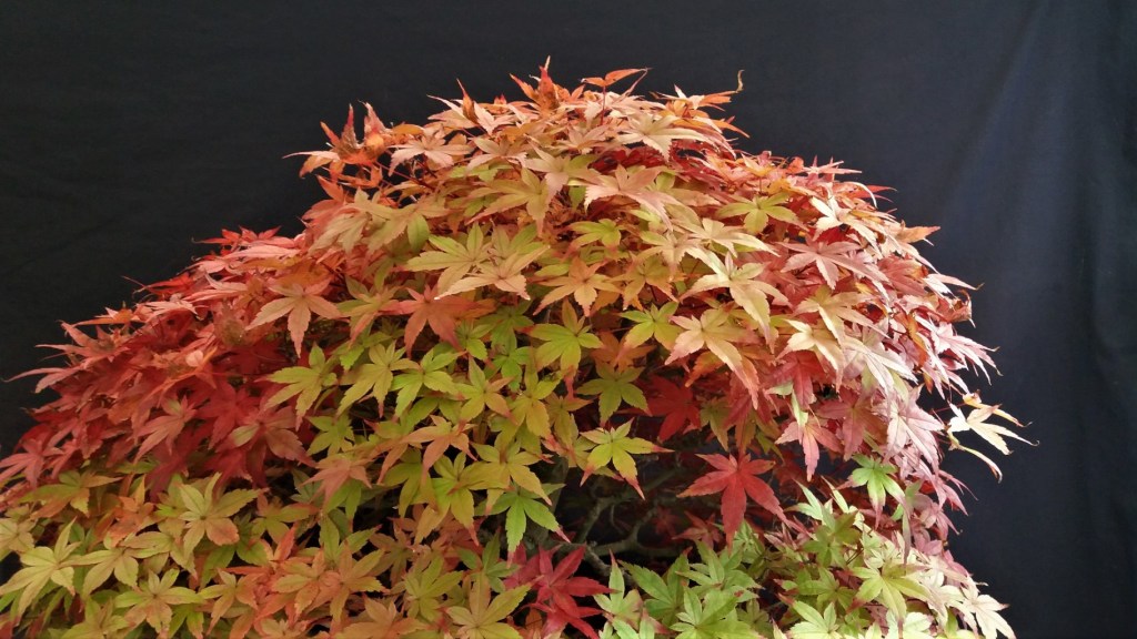 This old girlfriend of mine lives with me since 1990 and in those 30+ years, she has grown good radiating roots/Nebari and has doubled her overall Hight and her trunk circumference! And to show herself off this year, her colours are seriously beautiful! So I just had to make a quick picture with my old cell phone before the sun disappeared completely! Hope you like it anyway?
