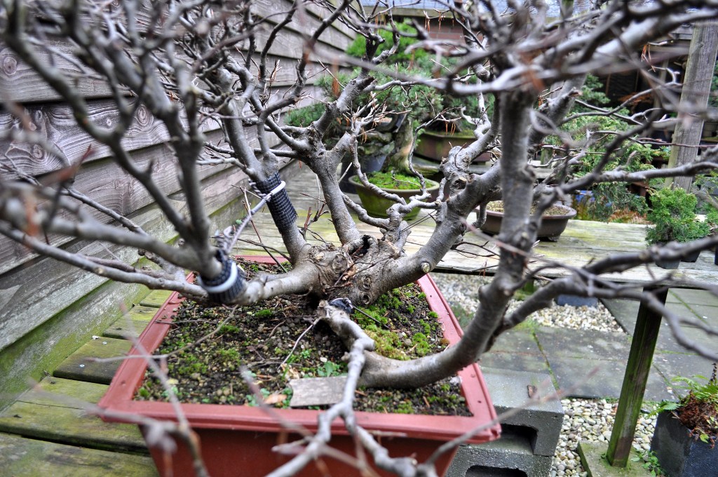 The still pre-Bonsai of this story was collected in 2012 by me and my dear Slovenian friends in the beautiful mountains of Slovenia. It was growing underneath a low-hanging branch of a very old and massive Beech. The leg of sunlight and the constant defoliation of the foliage and the young branches by deer and other grassers kept it this small! I can only guess how old it is?! During this past decade, I worked to get it to bud back lower on the trunk and branches to make it more compact and tree-like! It needs a nice shallow pot or even better: a slab and a few more years of fun work to get it to show worthy! But that now lies in the hands of my Bonsai friend Diederick who is buying it from me to at it to his own amazing Bonsai collection!