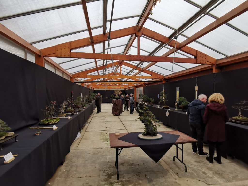 I got the Bonsai virus in early 1990 and gave my first demo not much later at my then-Bonsai Club “KOYA” in Rijswijk (NL). My demo tree was a Dubbel trunk Chamaecyparis “Chamaecyparis” nana gracilis that was used for many years as a mother plant for cuttings in “Boskoop” Holland. Because of the typical for this species roots bulging and the leg of useable cuttings anymore I could buy it from the grower and daringly used it for this my first-ever demo! And I would use that Bulgin base as a feature! I planted it later in a (then) unique curved thin pot by my old friend Potter William Vlaanderen and entered it in the Yearly “Dutch Bonsai Federation” show and won first prize with it! Later we even drove all the way to the famous “CRESPI” Cup in Milan (IT) to show it there…boy, I was innocent these days sigh!!! With the tree on the leather back seat, of my 750 IL beamer (petrol was cheaper those days!😋) I suddenly had to break at a roundabout for a suicidal rabbit and that made the Bonsai fly straight into the back of my seat! Akadama was everywhere and some small branches broke! But we made it in the end and proudly showed it at this great venue! I came across the below picture on the web. I think it was made at the “Noelanders Trophy” in Belgium. Or at the “Ginkgo Award” in Belgium? I will look it up?