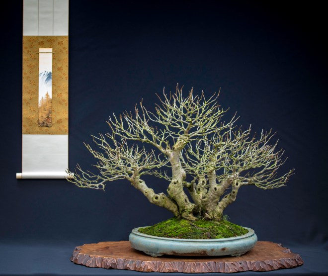 Danny had saved a beautiful Tokonoma for my big Larch and it was the first time for me to be able to do that!!! Creating my composition in this special space was a first for me and therefore very exciting and a real honour! As you can see here, I am happy with the way it all looks! And I am especially proud that this is a Bonsai from a tree that I collected myself all those years ago and that almost all branches and the top section were created from nothing! Later that evening my friend Mario Komstra, for who I have the highest regard, discussed with me this tree and he gave me an honour that surpasses for me every award there is to win! He called this old larch a Bonsai and an important European tree! Coming from him, I think this tree and me did all right up to now! But he also pointed out that there are still things that could and should be improved! Like the thickness of some of the branches and the top trunk section and maybe a shallower pot in the future! Points are taken Mario and thanks for the discussion and talk we had…you are an inspiration in many ways my friend and I do hope to visit you sometime, when things are better!!! 😉