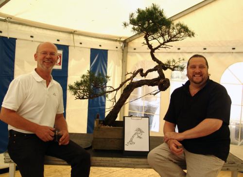 * Above picture: Here I am posing with Klaus Buddig in front of his Yamadori Pinus Sylvestris he so kindly entrusted to me to demonstrate on. In the middle, you can see the design I made for this future Bonsai.