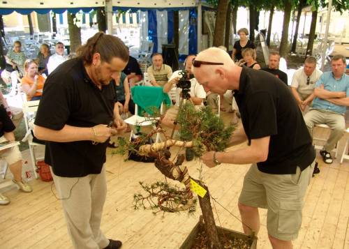 *Above picture: Here I am working together with Julie Isager on here Yew, she is the winner of the new talent competition. I am sure she has a bright Bonsai future ahead of her!