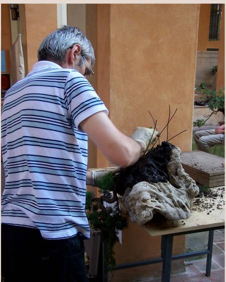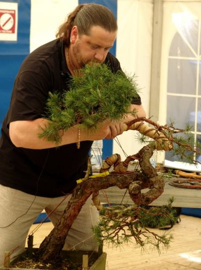 Above picture: Peter Landerloos working concentrated on his Yamadori Pine.