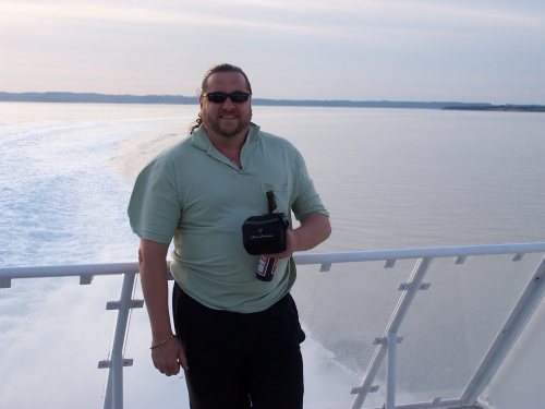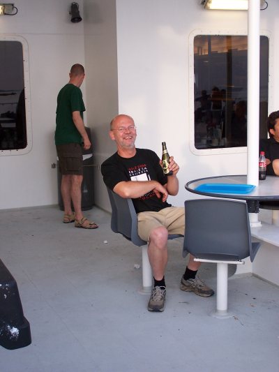 Above picture: Klaus Buddig relaxing on the back of the boat.