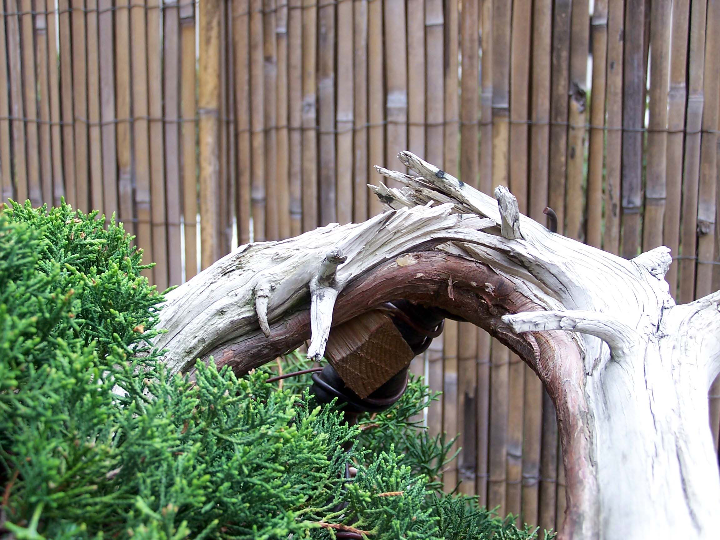 *Picture above: I like demonstrations, like this one, where the audience can walk right up to me and ask me questions and see hands on what I am doing. You can see here than the cascading branch is all ready brought down the trunk. The future top section is here still reaching for the sky.