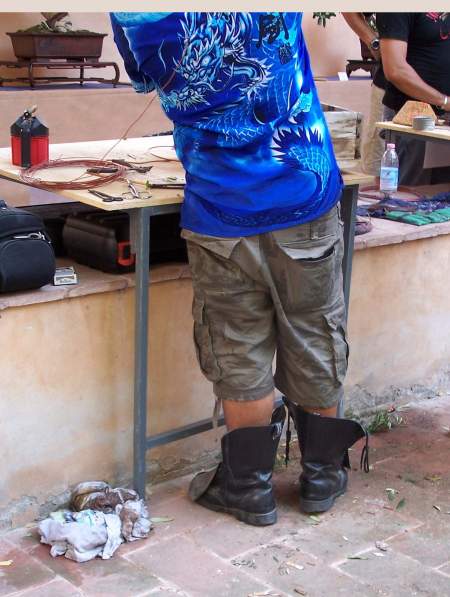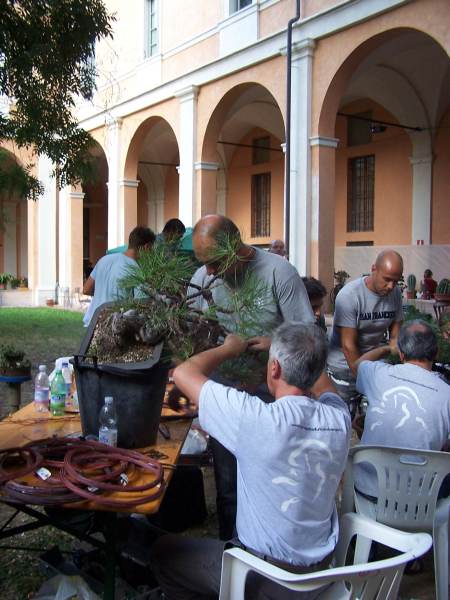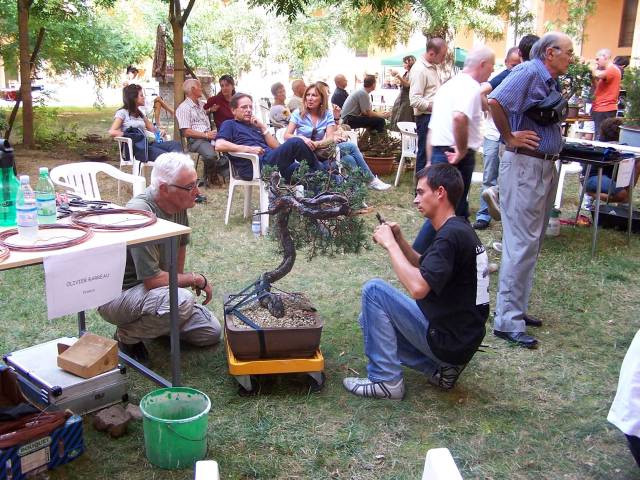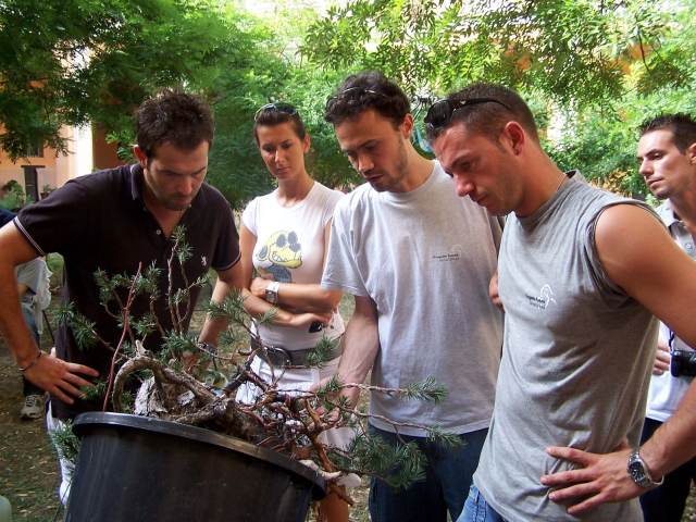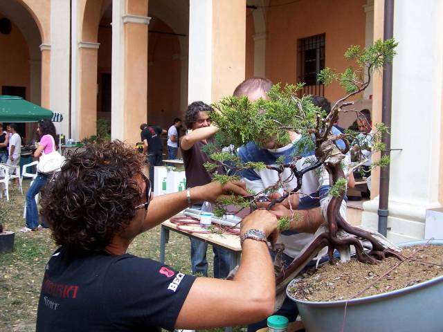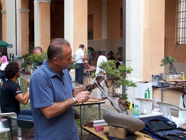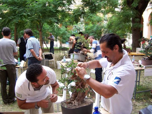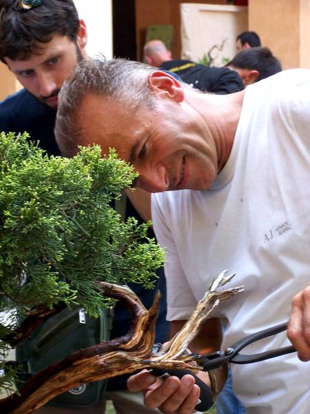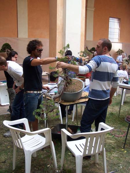 During this weekend I saw some of the best bonsai that I had ever seen, that where showed in one of the most perfect places, that I had ever seen and literally in the middle of all that Bonsai Bliss, there were more than 10 of the best Professional Bonsai teachers in Italy demonstrating their talents on amazing and sometimes very difficult, but exciting material! And it did not stop there, because there were, even more, very talented Bonsai students from the “PROGETTO FUTURO” Bonsai school, were Enrico, Mauro and Ivo are teachers, working on amazing Yamadori. Together they all were demonstrating, with great result, on some unbelievable raw material! This was really a Bonsai spectacle that I wish every Bonsai nut could see! It was pure magic for me to be amongst all this talent, Bonsai beauty, superb material and friendliness! And I hope that the pictures that I post here can evoke some of that feeling with you!