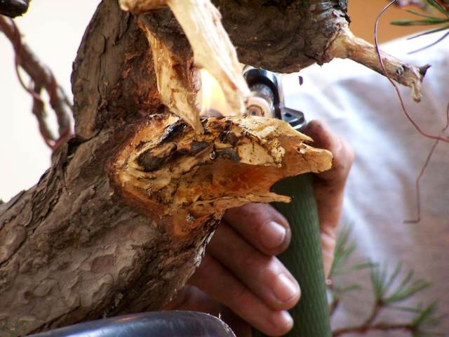 *Above 2 pictures: During this Sunday workshop,  Klaus Buddig enjoyed himself very much working on the deadwood of his Pine, that I had worked on during my Saturday demo! And I liked to add: he did a really beautiful job!