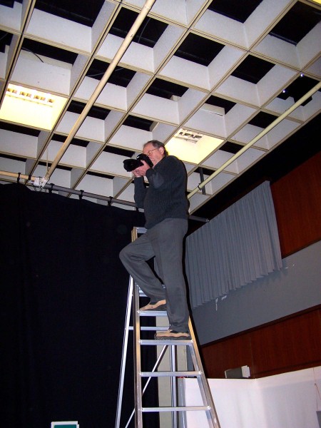 Above: Resident photographer, W. Evenepoel hard at work to shoot a bird’s eye view picture for the commemorative book of this anniversary edition.