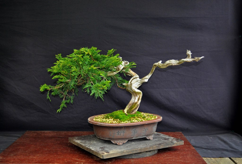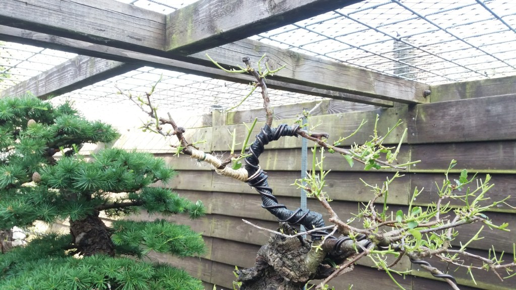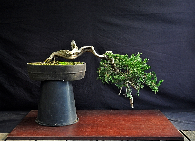 Below: Jan. 2018. The tree in better times during the yearly “New Years” toast at “DESHIMA” Bonsai centre (NL). I was also very proud that he was selected to shine in the prestigious Noelanders Trophy (B) later that same year!
