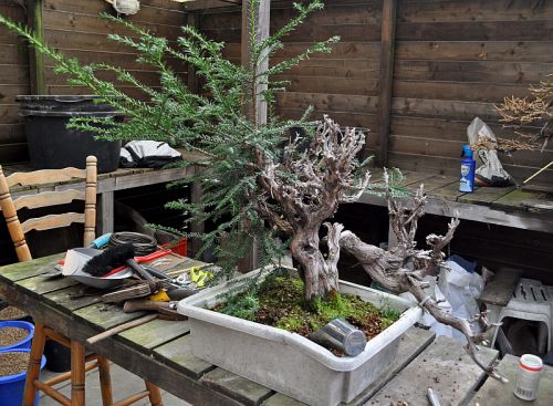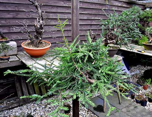 Below: The new air pot and behind it the poor Ilex and in the background two other trees waiting for their turn.