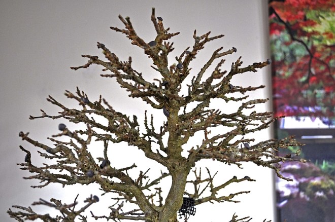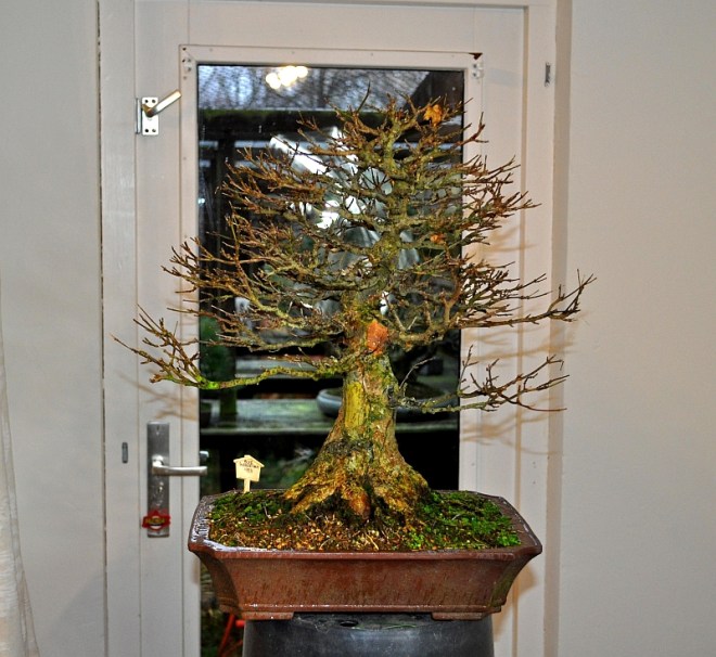 Below: Close-up of the almost finished top section. A lot has improved and the future is promising again for this tree. These actions will over the next couple of years bring it closer to the desired outcome, a Bonsai with good mature and beautiful ramifications. And that is a great part of a successful deciduous Bonsai…a part that is so often forgotten in modern Bonsai!