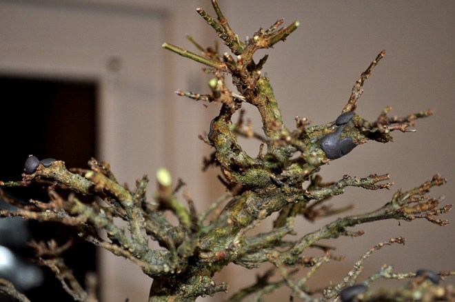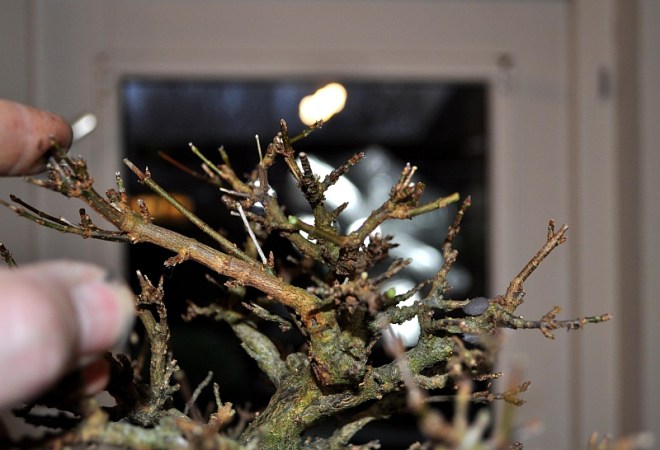 Below: Not the best of pictures but I hope it shows enough of how the ramification looks after all the work?! From here it will be more working towards improving the finer ramification and structure of all the branches. I am happy to see that this long partnership is getting closer to the image of a mature Bonsai…I can’t wait to see how it looks in a few more seasons’ time!