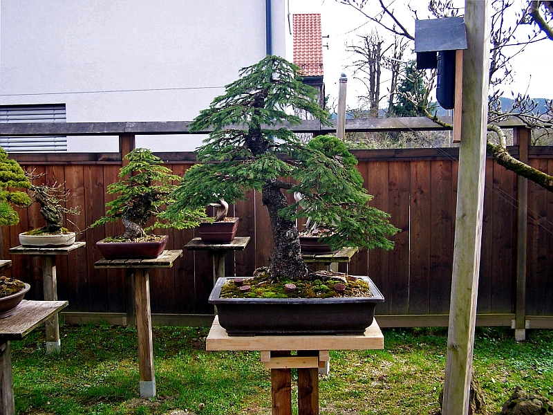 just one day back from my visit to my Friday workshop in beautiful Slovenia! My dear friend and kind host TOMAŽ KOVŠCA from the “TORA” International Bonsai School in Slovenia took me on an amazing two days sightseeing tour around Slovenia that left me even more in love with this breathtaking country and its super friendly people! Like I told him many times during that trip: I could happily live here and grow old with a smile on my face! Images and the story from that part of my visit to this wonderful place will follow soon! On Friday afternoon and evening there was a workshop planned in his great Bonsai studio that I would lead with the help of Tomaz himself and his talented student Gasper Gabrijel. Relaxing after our sightseeing trip before it all would start we were waiting in the sun enjoying a Turkish coffee and home-brewed vodka with Juniper berries in it that you could chew…it was absolutely heavenly and boy did it hit the spot! And the view of Tomaz’s beautiful Bonsai collection that surrounded us was not half bad either! Here are some images of his amazing collection that were shot (with a not-so-good old camera) by me before the students arrived.