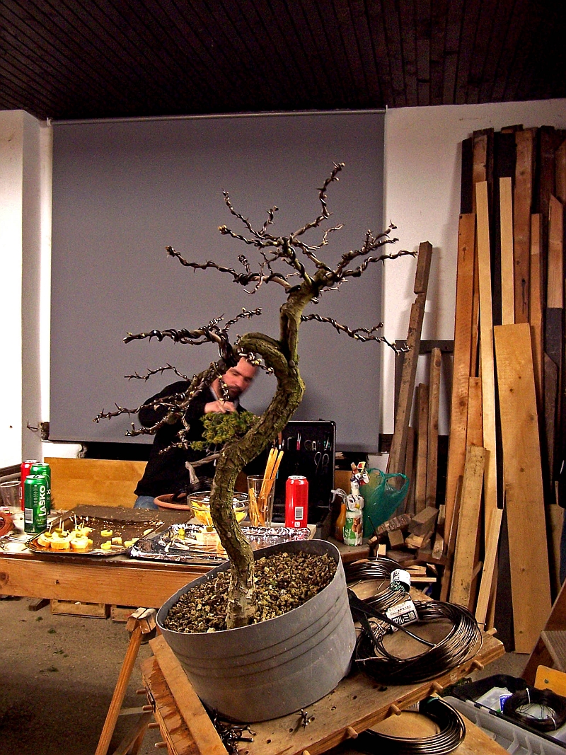 Below: And here is the (for now) finished pre-Bonsai. I am discussing here at the end of the workshop what the happy student with some help from me has reached…and that is simply amazing! Because I really do think that this is a very exciting and promising result! And I do believe that in just 3 or 4 years time this will be an amazing Bonsai!