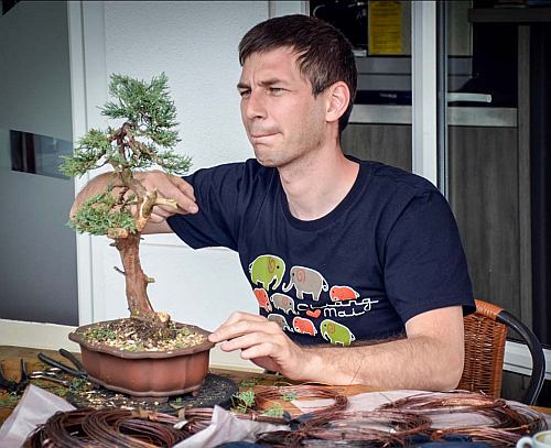 Het gezamenlijk kennis en vaardigheden uitwisselen tijdens een bijeenkomst is een bijzondere ervaring . Dit is veel stimulerender dan het lezen van een boek of naar een tentoonstelling gaan. In twee bijeenkomsten heb ik onder begeleiding van de bonsai meester en met behulp van de secretaris van de club mijn eerste bonsai bedraad en ben ik al naar een bonsai veiling geweest. De cursus geeft mij veel houvast. Mij werd al snel duidelijk dat de Nederlandse boeken die hier beschikbaar zijn over bonsai vaak vertaalde boeken zijn vanuit de Japanse situatie en klimaat.