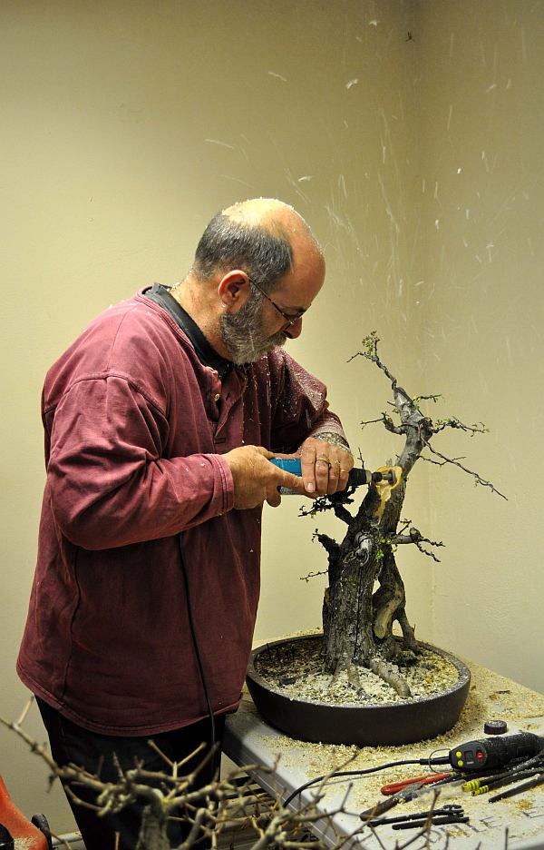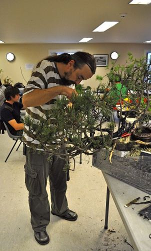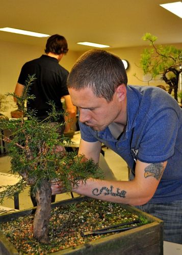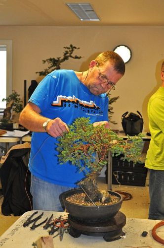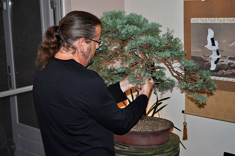 Below: Simon “Bonsai Monkey” concentrated and in the zone. I find it a pleasant and wonderful sight when people are one with their trees! It makes me smile because this must be just how I look to others when I am in my tree! 🙂