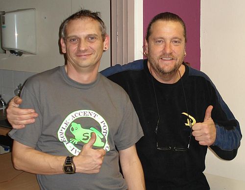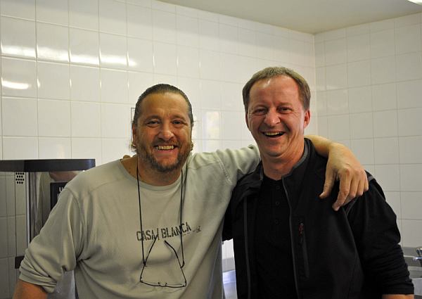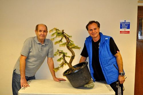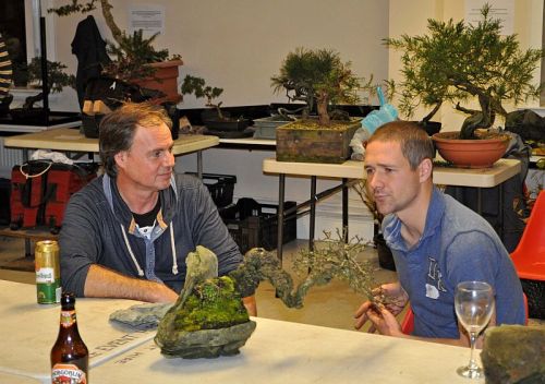About that time the garden was already filled with new arrivals from all over Europe, among them was Pavel and Eric the pot magician! Pavel and I embraced for the first time, but for me, it felt like meeting an old friend! We both, as I found out later from Pavel himself, were both great fans of each other’s work and approach and had been waiting to meet each other to work together! Bonsai can do this among far away unknown friends! Later that day the gazebo was built over the large yew and the classical music was changed to pumping house music! To much culture could kill you after a while! This day was already great but it would only get better!!!! The (very) late dinner that evening was like always with Tony and me at one table a madhouse and a lot off the many glasses of wine and other spirits we sampled came out off our noses from laughing! Like I said, it felt like being home, even for the new ones that had joyed us! A warm bad is the best word…the whole world should be doing Bonsai! But the best part that night was meeting my old buddy and confident Terry Foster and Charlotte his lovely wife who, just like Tony and Carolyn, kindly opened up their home again and even let me use their own bed so that I could sleep alright with my bad back! How humbling is that?!