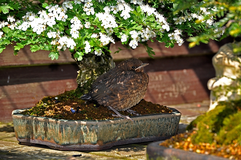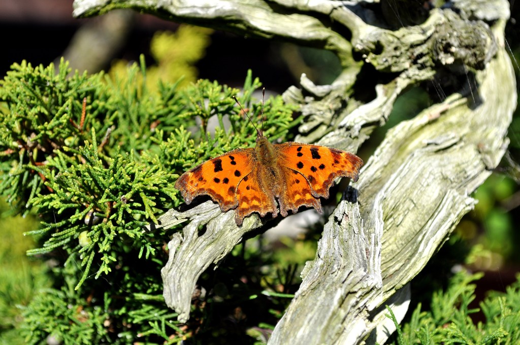 Below: For some of the bigger Bonsai in my collection, there was no more room underneath my backyard shelter! But I am sure they don’t mind at all!