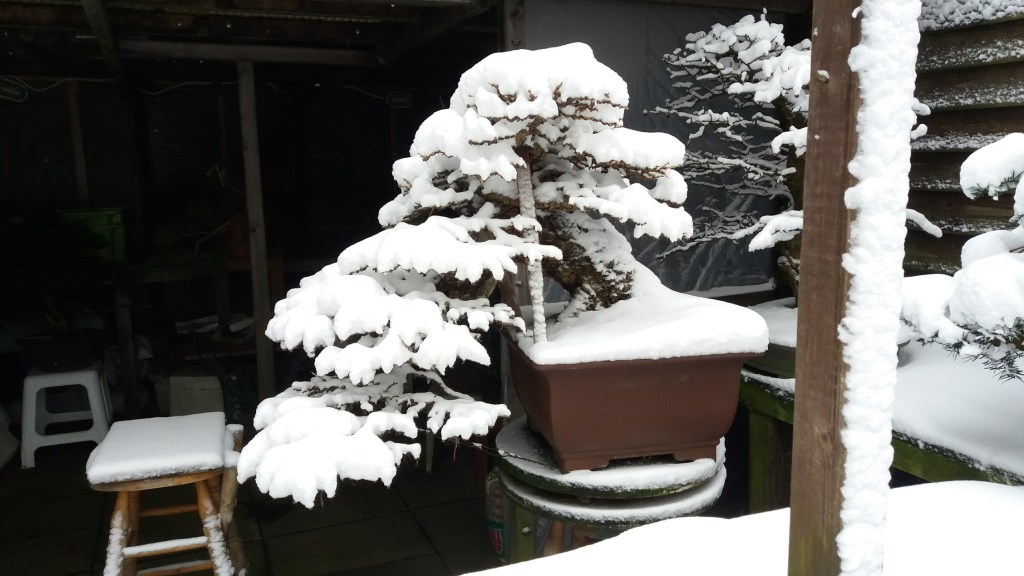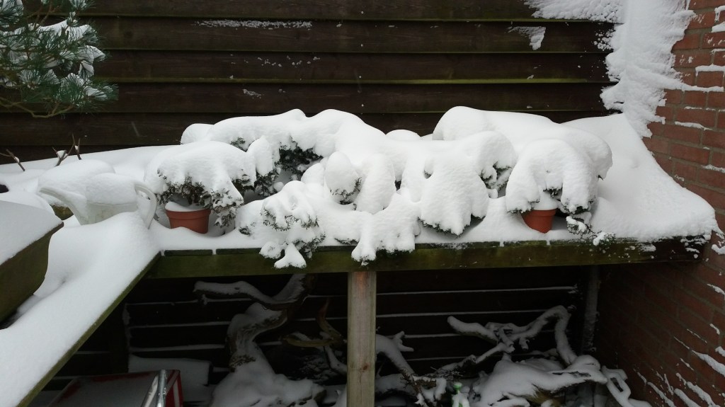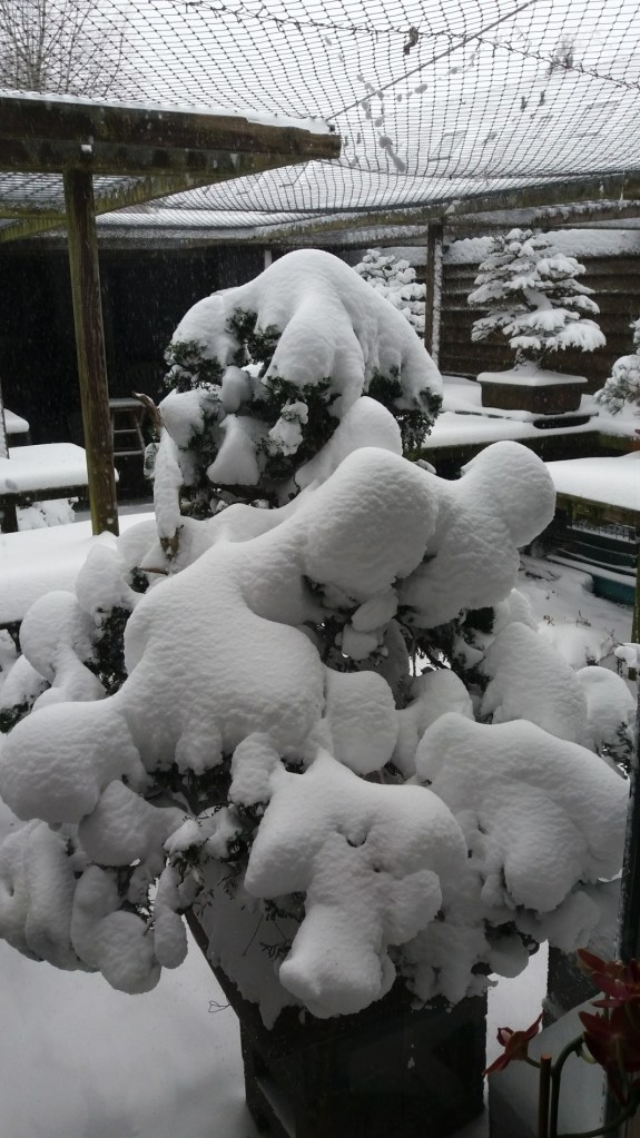 Below: under need, this thick layer of snow more than 20 shohin pre-Bonsai Itoigawa Junipers are hidden!