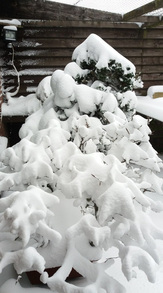Yesterday’s weather forecast of at least a week-long snow and very cold weather was not wrong for a change and I have today’s picture to prove it! I woke up this morning to discover a magical snow-covered garden that I would love to share with you all!