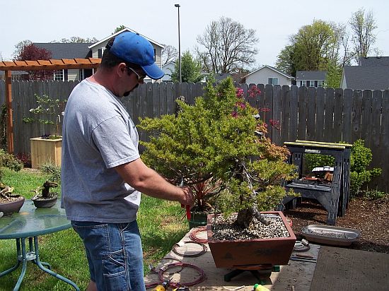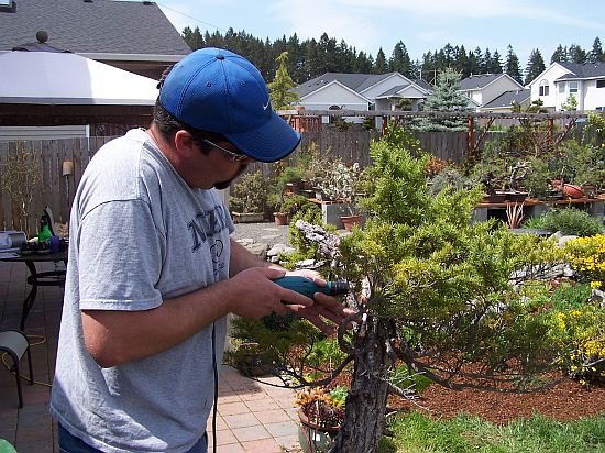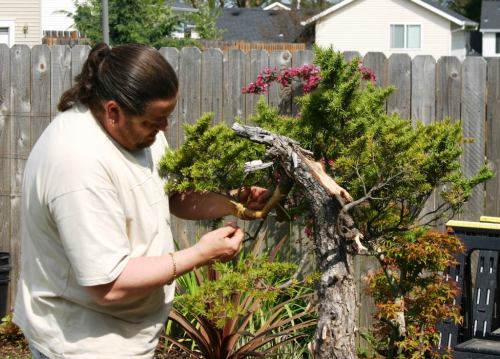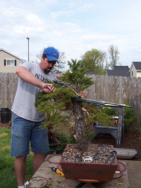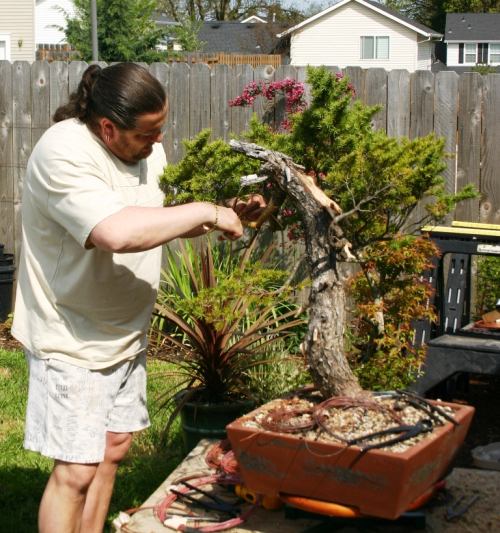 Above picture: Irene’s “Hubby” Terry brought a Juniperus Chinensis along to work on.