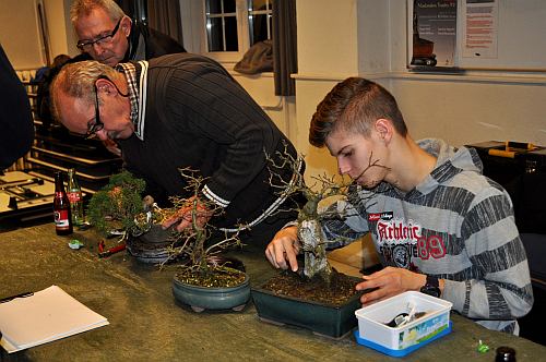 Below: Just one on an old removed branch stump secured layer of 3,5 mm wire is applied and the branch is carefully bent into its new more natural-looking position! Some light moving up and down was also created to make the branch look less stiff!