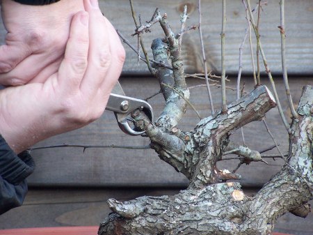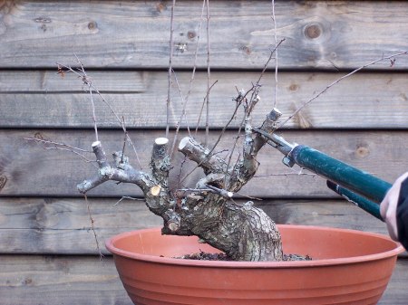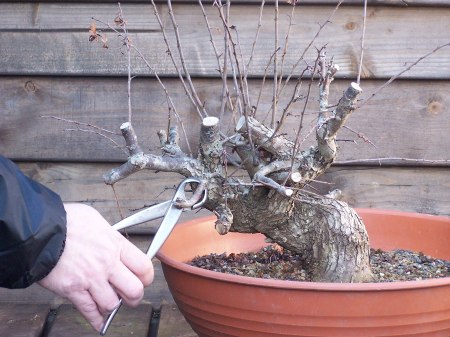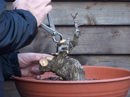 Below: Now only the top needs to be shortened right above the second right small branch leaving some room for the die/dry back!