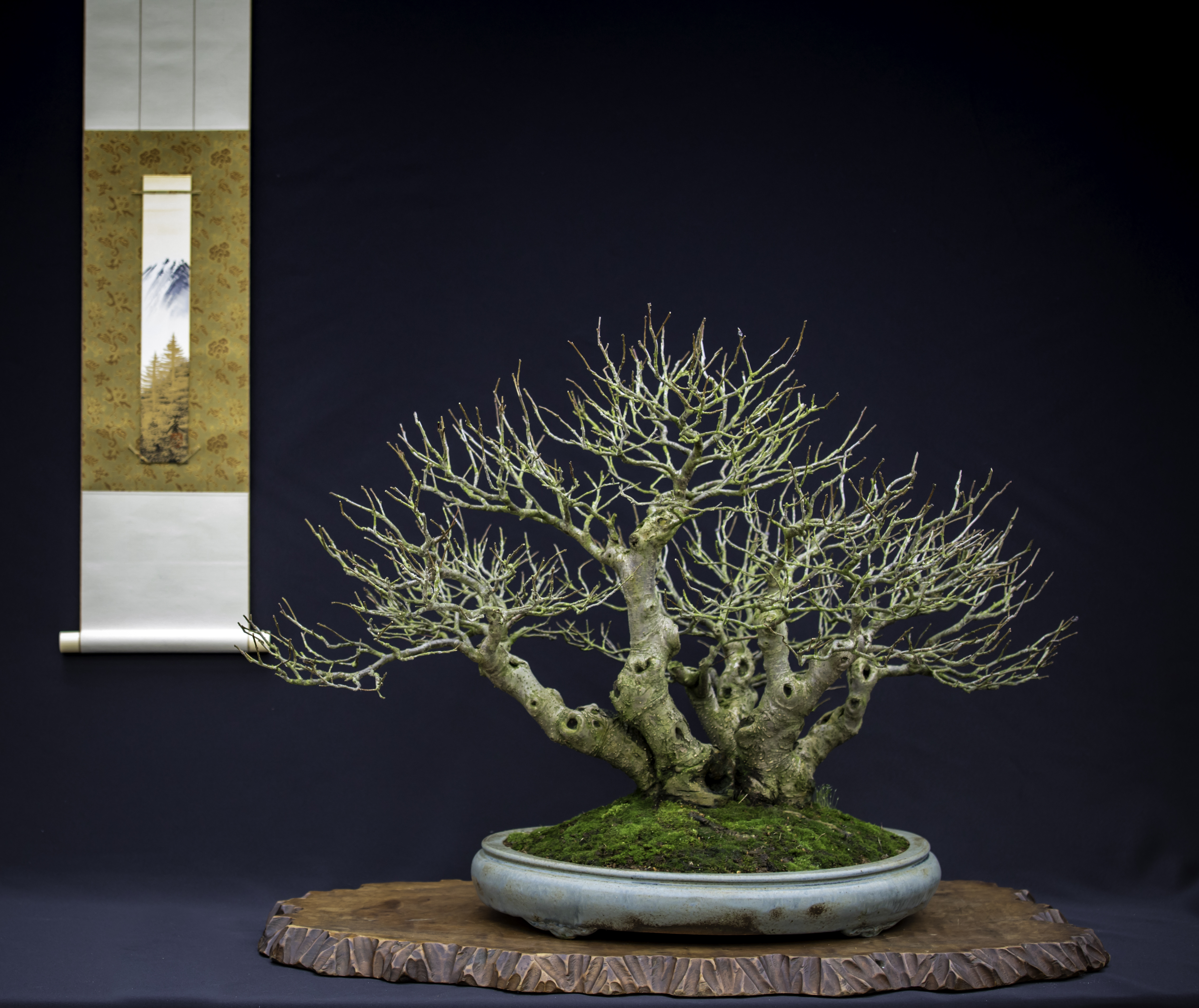 yesterday I proudly brought in my Ilex verticillata (urban) Yamadori Kabudachi (five trunks) for the international Bonsai show Noelanders XIX that is staged on 3-4 February in Genk Belgium. I had loaded my Bonsai, wooden slab and accent plant early in the morning and secured everything really good to prevent small incidents that could have big consequences for my Bonsai! And left around 12 for the 2.5-hour boring drive to the enormous Limburg hall in Genk Belgium where the show is staged. I luckily and surprisingly had no traffic jams around Antwerpen and arrived around 3 and went straight in to get a trolly for my stuff and to enter my Bonsai officially and get and sign all the paperwork that goes along with such a big show! I was number 5 or 6 in line to get my Bonsai photographed for the commemorative Noelanders Trophy book by old Bonsai friend Willy Evenepoel so in the meanwhile I could admire all the wonderful Bonsai from all around Europe that was standing all around me on trolleys waiting just like me to be photographed. Luckily there was coffee to warm ourselves up because it was really cold and draughty in this enormous hall where the big doors were constantly opened so that Bonsai merchants and artists alike could bring in their merchandise and Bonsai!
