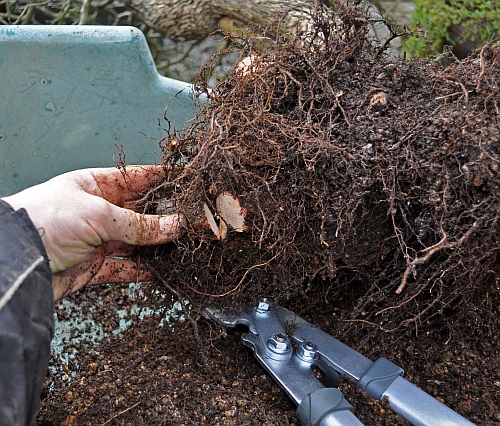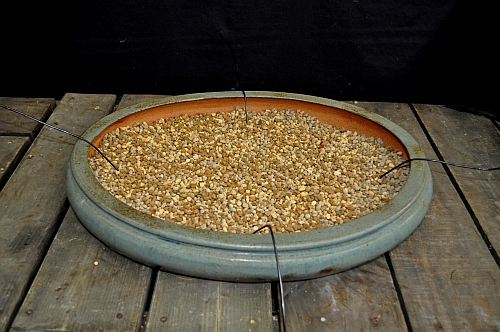 Below: After cutting and pinching. The copper wire in the top of that Jin is there to prevent it from accidentally breaking when I move it around! My garden is covered with galvanized iron gauze (normally used in concrete walls), so a mistake is easily made when lifting up a tree too high!
