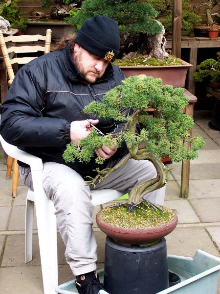 Above: Harry Gerdes concentrated at work on his Juniper.